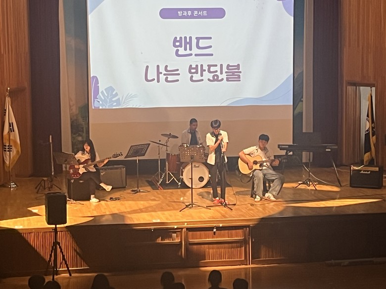 학생들이 주도적으로 무대를 기획하고, 전교생이 함께 참여한 이번 콘서트는 다양한 곡과 프로그램으로 구성되어 학생들의 노력과 재능이 빛나는 무대를 만들어 냈으며, 방과후 활동의 의미와 가치를 느낄 수 있는 뜻깊은 경험이 되었다.