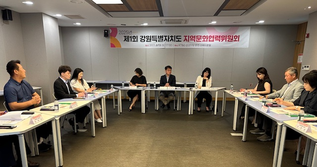 [강원도 세계타임즈=김민석 기자] 강원특별자치도(도지사 김진태)는 9월 13일(토) 상상마당 춘천스테이 호텔에서 「2025년 제1회 강원특별자치도 지역문화협력위원회」 회의를 열고, 도립예술단 운영 현황과 활성화 방안을 논의했다.