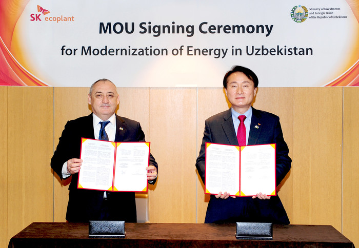 SK에코플랜트는 서울 중구 롯데호텔 서울에서 우즈베키스탄 대외투자무역부와 ‘우즈베키스탄 에너지 현대화 사업 추진’을 위한 업무협약(MOU)을 체결했다고 29일 밝혔다.