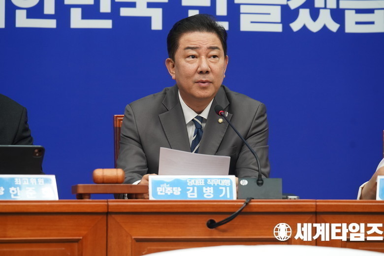 더불어민주당 '김병기' 당대표 직무대행 겸 원내대표가 7일 서울 여의도 국회에서 열린 최고위원회의에서 발언하고 있다.