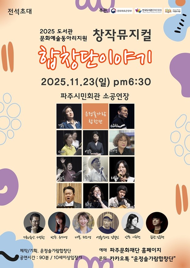 이번 공연은 가람도서관의 합창동아리인 운정솔가람합창단이 직접 기획하고 준비한 무대로, 단원 각자의 노래에 담긴 이야기를 바탕으로 익숙한 가곡과 가요를 새롭게 편곡해 독창, 중창, 합창, 안무 등 다양한 형태로 공연된다.