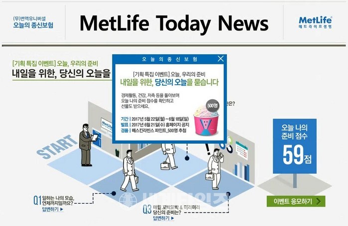 [세계타임즈 김장수 기자] 메트라이프생명은 행복한 내일을 위한 경제활동, 건강, 저축에 대한 준비가 얼마나 중요한지 필요성을 일깨워주는 이벤트를 준비했다.
