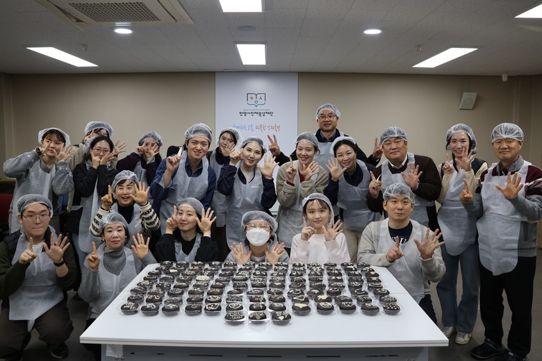 [안양시 세계타임즈=송민수 기자] 안양시 인재육성재단(이사장 최대호)은 지난 8일 재단 내 베네치아 중강당에서 창립 15주년을 기념해 임직원이 함께하는 ‘사랑의 수제 초코파이 나눔’ 사회공헌활동을 진행했다고 12일 밝혔다.