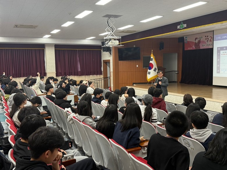 ▲3학년 희망 학생 101명이 참여하는 ‘창의융합 진로캠프’는 3월부터 6월까지 운영된다. 인공지능(AI) 도구를 활용한 영어 프레젠테이션, 독서 기반 주제 탐구, 메이커 융합 수업, 진로·진학 특강 및 대학 탐방 등으로 구성되며, 개인 진로에 맞는 고등학교 입학 안내와 고교 생활 설계를 돕는 맞춤형 코칭도 함께 진행된다.