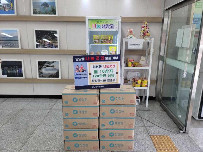 이날 전달받은 햄은 주민센터에 비치된 나눔 냉장고를 통하여 취약계층에 지원될 예정이다. (문의 240-6674)