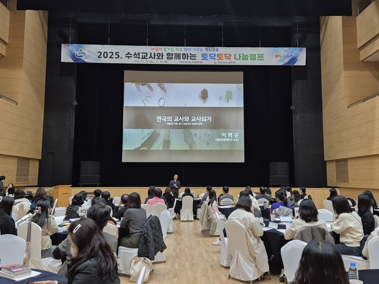 [경남 세계타임즈=최성룡 기자] 경상남도교육청(교육감 박종훈)은 28~29일 사천 인재니움연수원에서 교원의 심리적 회복과 수업 전문성 강화를 위한 ‘2025년 수석교사와 함께하는 토닥토닥 나눔캠프’를 운영한다.