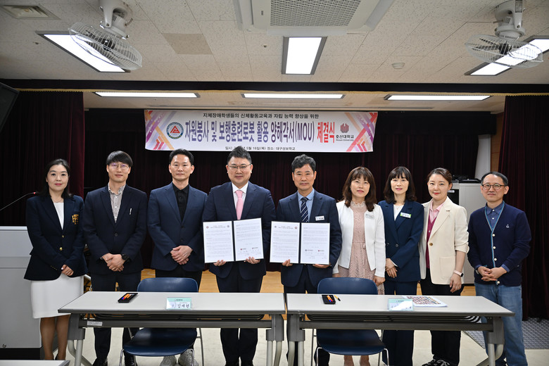 [대구 세계타임즈=한윤석 기자] 대구성보학교(교장 정경렬)는 5월 16일(목) 호산대학교(총장 김재현)와 지체장애 학생의 신체활동교육 지원 및 보행훈련로봇 활용을 위한 업무협약을 체결했다.