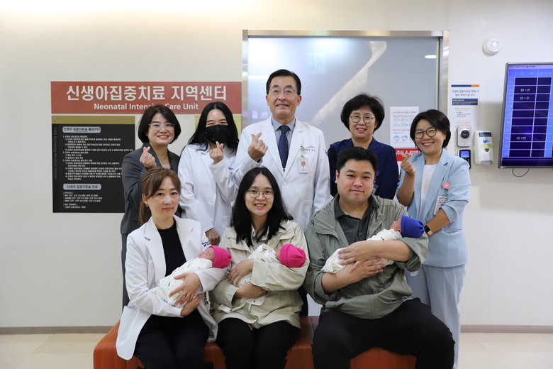 여아 2명, 남아1명 29일간 신생아 집중치료실에서 치료 후 건강하게 퇴원