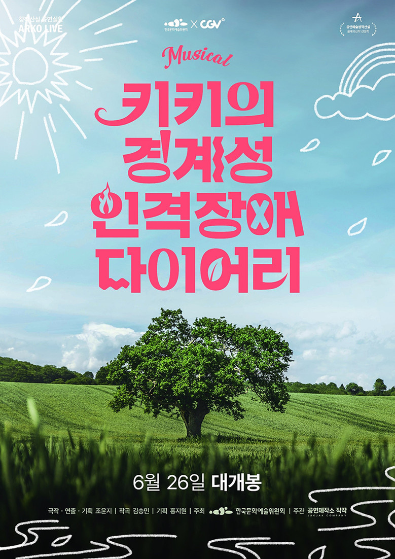 첫선을 보이는 창작뮤지컬 ‘키키의 경계성 인격장애 다이어리’는 6월 26일부터 7월 2일까지 상영된다. 현대인들이 많이 겪고 있는 성격장애를 소재로, 주인공인 키키가 자신의 병을 인지하고 맞닥뜨리며, 조금씩 앞으로 나아가는 이야기를 담아 많은 이들의 공감을 자아냈다. 뮤지컬에서는 보기 힘든 토크콘서트 형식을 차용하여 주인공 키키가 자신의 병에 대해 이야기하고 소통하는 과정을 경쾌하고 세련된 연출로 집중 조명한다. 완성도 있는 음악, 실력파 배우들의 흡입력 있는 연기도 함께 만나볼 수 있다. 한편, 무대인사와 GV 등 관객과 함께하는 스페셜 이벤트도 마련된다. CGV대학로에서 6월 29일(토) 저녁에는 배우들과 함께하는 무대인사가, 7월 1일(월) 18:00 회차 상영 종료 후에는 창작진 등과 함께하는 미니GV와 팬미팅이 진행될 예정이다.