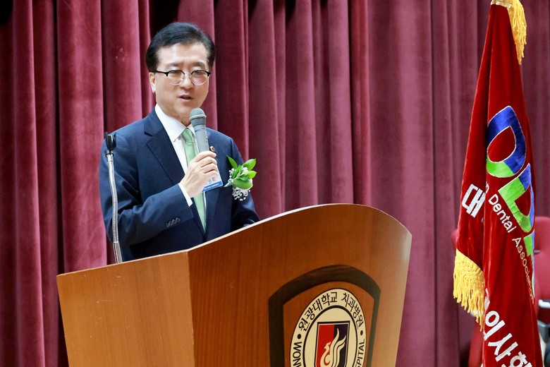 [대전 세계타임즈=이장성 기자] 대전시의회 조원휘 의장은 21일 원광대치대 대전병원에서 개최된 대전광역시 치과의사회 정기 대의원 총회에 참석해 시민들의 구강건강 증진과 장애인 등 취약계층에 대한 의료봉사활동에 깊은 감사를 표했다.
