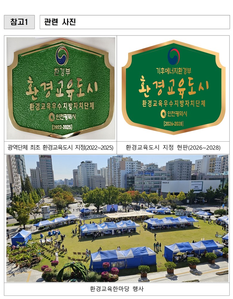 - 시·교육청·시민단체 협력으로 시민 참여형 환경교육도시 도약 - [인천 세계타임즈=심하린 기자] 인천광역시(시장 유정복)는 11월 10일 기후에너지환경부로부터 전국 광역자치단체 중 최초로 ‘환경교육도시’로 재지정되었다고 밝혔다.