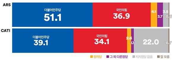 전화면접은 더불어민주당 오차범위 내 우세(격차 5.0%p),MZ 무당층 비율이 높아져.