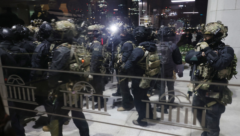 [세계타임즈 = 심귀영 기자] 윤석열 대통령이 3일 밤 비상계엄을 선포한 가운데 4일 자정께 서울 영등포구 여의도 국회 본관으로 계엄군이 진입 준비를 하고 있다. 2024.12.4