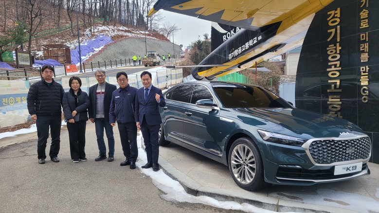[광명시 세계타임즈=송민수 기자] 광명 소재 경기항공고등학교(교장 유형진)는 기아와 함께 2023. 12. 29.(금)‘기아 K9’ 기증식을 가졌다. 이번 행사에는 경기도의회 유종상 의원, 경기항공고등학교 유형진 교장, 광명교육지원청 이성남 장학사를 비롯하여 기아의 박철 상무, 주영종 책임매니저가 참석하였다.