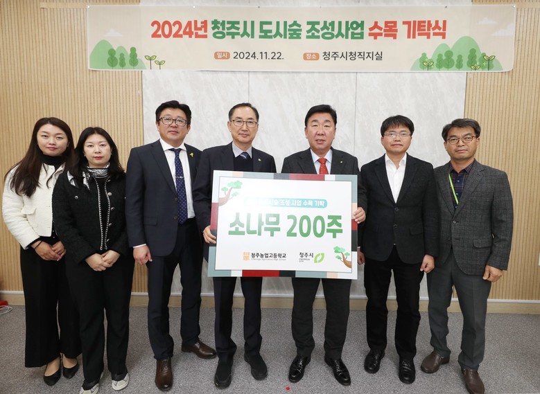 [충북 세계타임즈=이현진 기자] 청주농업고등학교(교장 고종현)는 22일(금), 청주시(시장 이범석)와 청주시 도시숲 조성 사업을 위한 동근 소나무 200주를 기탁하고 청주시청 임시청사 직지실에서 기탁식을 진행했다.