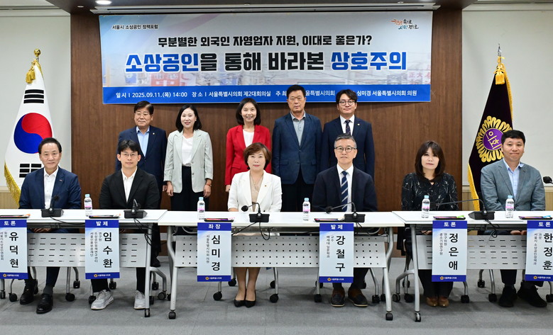 심 의원은 향후에도 토론회의 성과를 이어, 상호주의 조례 제정 방향을 검토하고, 서울시 소상공인 정책의 전환 등을 통해 소상공인의 권익 보호와 공정 경쟁 환경 조성을 위한 의정활동에 최선을 다할 것이라고 약속했다.