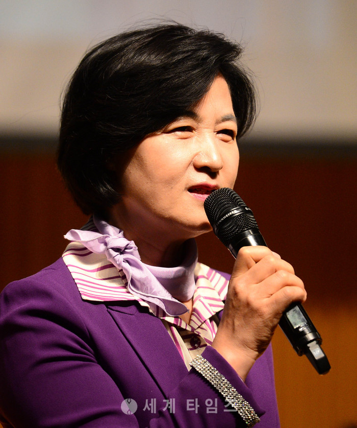 세계여성의 날 기념 제33회 한국여성대회 기념식 & 성평등정책토크가 열린 8일 오전 서울 중구 서울시청에서 추미애 더불어민주당 대표가 인사말을 하고 있다. 2017.03.08.