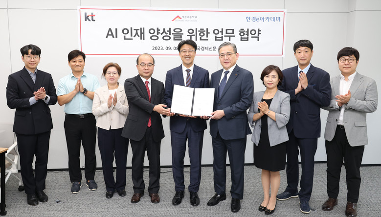 [파주시 세계타임즈=송민수 기자] 세경고등학교(교장 장계홍)는 경기도 최초로 ㈜KT(대표 김영섭) 및 한국경제 ㈜한경이아카데미(대표 이정민)와 지난 9월 8일 업무협약을 체결했다고 밝혔다.