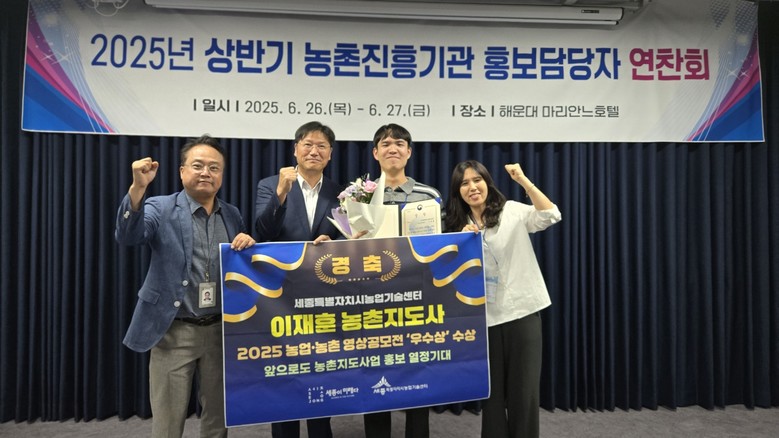 [세종 세계타임즈=이채봉 기자] 세종시농업기술센터가 26~27일 양일간 농촌진흥청 주관으로 열린 홍보연찬회에서 ‘2025년 농업·농촌 영상공모전’ 우수상을 수상했다.