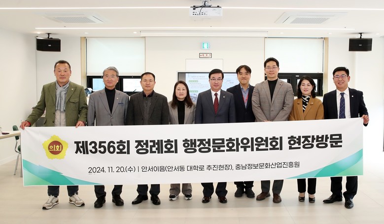 [충남 세계타임즈=백택기 기자] 충남도의회 행정문화위원회(위원장 박기영)는 제356회 정례회 기간 중인 20일 천안청년센터 ‘안서이음’과 충남정보문화산업진흥원(이하 진흥원)을 방문해 충남도의 주요사업 추진 현황 및 시설 전반을 점검했다.