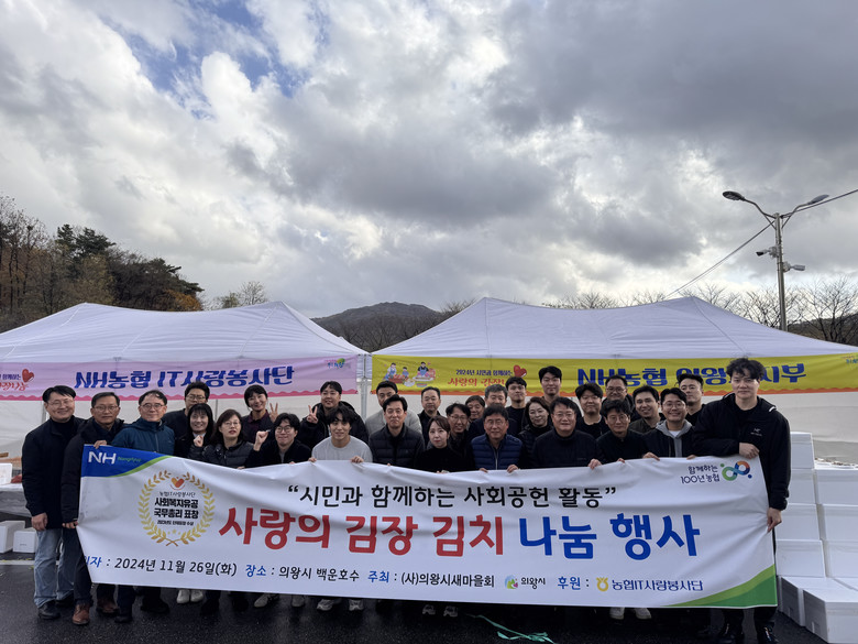 이날 행사에는 IT부문 황재현 부행장과 정보보호부문 신형춘 부행장, 농협중앙회 IT전략본부 이윤형 본부장, 서을구 IT노조위원장이 참여한 가운데 임직원 30여명이 함께 김장김치를 담궜다. 이번 행사에서 담근 김장김치는 관내 저소득층, 독거어르신 등에게 지원될 예정이다.