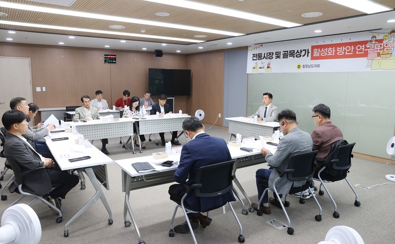 이날 회의에는 연구모임 대표인 이종화 의원(홍성2·국민의힘)을 비롯해 도의원, 전통시장 상인회 회장, 전문가 등 10명이 참여했다.