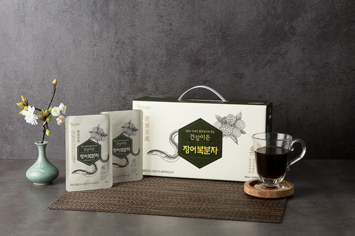 신제품 '건강이든 장어복분자'는 국내에서 장어가 유명한 전라북도 고창의 풍천장어만을 사용, 복분자 역시 유네스코 생물권 보장지역인 고창의 깨끗한 황토와 신선한 해풍을 맞고 자란 100% 국내산 복분자만을 사용했다.