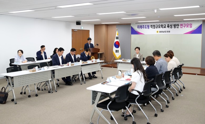[충남 세계타임즈=백택기 기자] 충남도의회 ‘미래주도형 적정규모학교 육성 방안 연구모임’이 7일 충남도의회 회의실 303호에서 제2차 회의를 개최했다.
