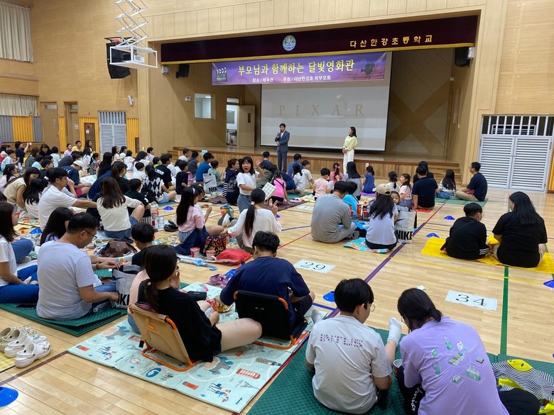 달빛영화관 행사는 학부모회에서 올해 처음 기획한 행사로서 3, 4학년 70여 가족, 220여명의 학생·학부모가 참여하였다. 관람한 영화는 가족의 소중함과 사랑을 주제로 한‘온워드’로 아이들과 어른 모두가 보기에 좋은 가족 만화 영화이다.
