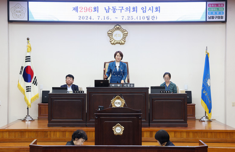 [남동구 세계타임즈=심하린 기자] 남동구의회(의장 이정순)가 지난 16일 제9대 후반기 개원 후 처음으로 제296회 임시회를 개회하며 본격적인 후반기 의정활동에 돌입했다.