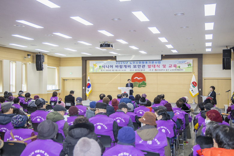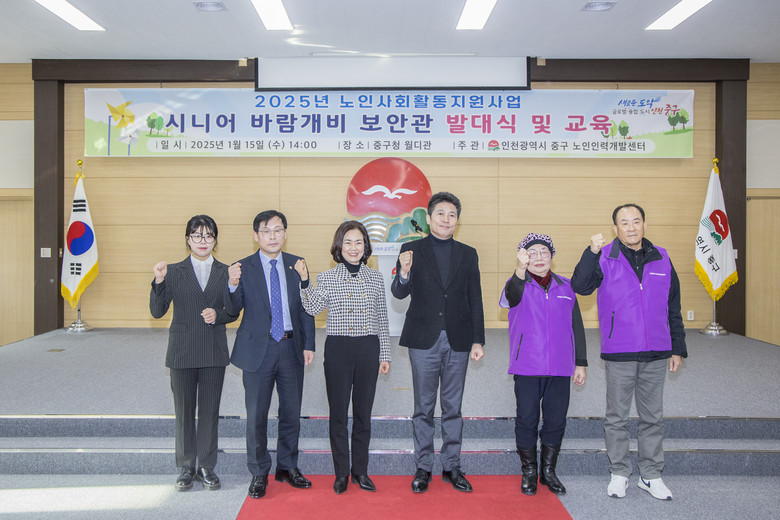 [중구 세계타임즈=심하린 기자] 1월 15일, 중구 월디관 대회의실에서 ‘시니어 바람개비 보안관’ 발대식이 성황리에 개최되었다. 이번 행사는 중구노인인력개발센터(센터장 전순임)가 주관했으며, 이종호 중구의회 의장을 비롯해 손은비 의원, 김정헌 중구청장, 시니어 참여자 140여 명이 참석해 자리를 빛냈다.