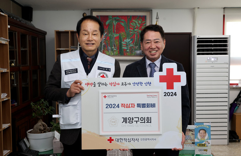 [계양구 세계타임즈=심하린 기자] 인천광역시 계양구의회(의장 조양희)는 23일 구의회 의장실에서 대한적십자사 인천지사 조의영 회장, 정연욱 서북봉사관장 및 관계 임원들이 참석한 가운데 2024년 적십자 특별회비를 전달했다.