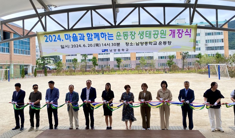 남양중은 ‘마을과 함께하는 운동장 생태공원 조성 사업’에 선정된 학교 중 ▲ 사천여고 ▲ 진주봉원중에 이어 세 번째로 개장하였으며, ▲ 양산오봉초 ▲ 밀양동명고 ▲ 창원경상고 등에서는 올해 중으로 운동장 생태공원이 조성될 예정이다.