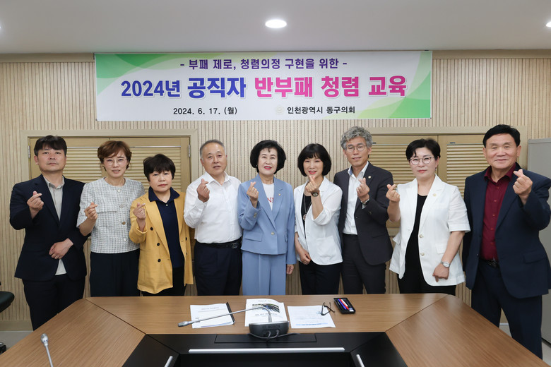 [동구 세계타임즈=심하린 기자] 인천 동구의회(의장 유옥분)는 지난 17일 의원 세미나실에서 소속 의원과 의회사무과 전 직원을 대상으로 반부패 청렴 교육을 실시했다.