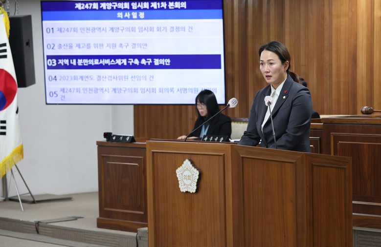 [계양구 세계타임즈=심하린 기자] 인천 계양구의회(의장 조양희)는 지난 23일 열린 제247회 임시회에서 신지수 의원이 대표 발의한‘지역 내 분만의료서비스체계 구축 촉구 결의안’을 의원 만장일치로 채택했다.