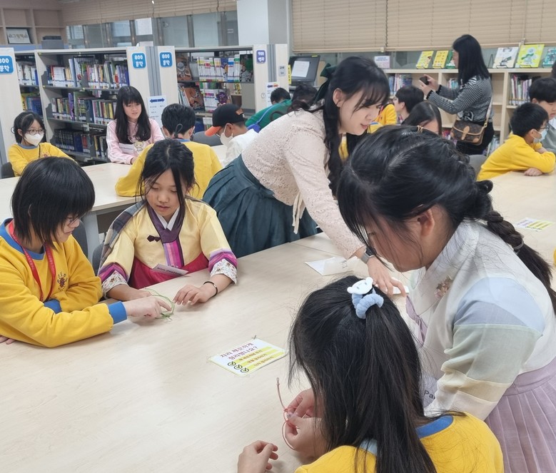 | ▲ 전통 매듭을 이용한 팔찌 만들기를 하는 모습 |