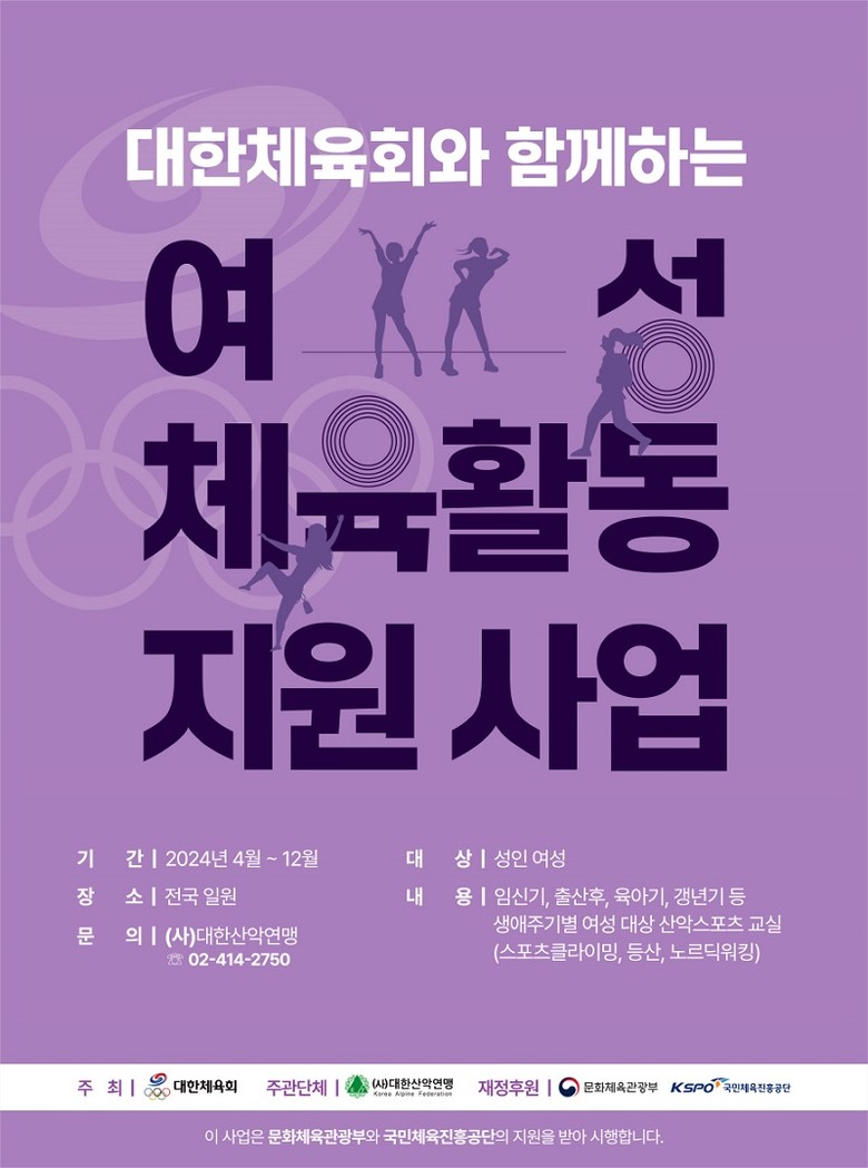 '2024 여성 체육활동 지원사업'은 대한체육회가 주최·주관하며, 대한산악연맹이 주관, 문화체육관광부와 국민체육진흥공단이 후원한다.