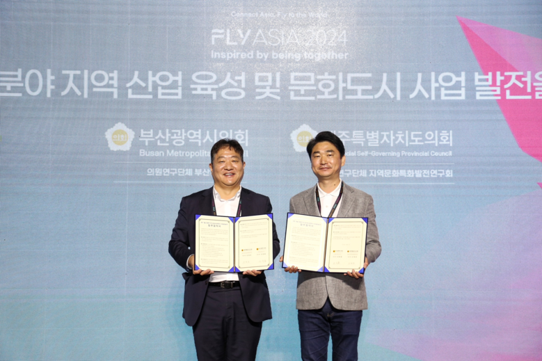 [부산 세계타임즈=이용우 기자] 부산광역시의회와 제주특별자치도의회가 지역 문화‧예술‧관광 산업의 활성화를 위해 힘을 합쳤다. 오늘(1일) 부산 벡스코에서 양 지역 의원연구단체가 함께 협약을 체결하며, 지역의 고유한 문화‧예술 자원과 관광 인프라를 기반으로 문화도시로의 성장을 이끄는 새로운 도약의 발판을 마련했다.