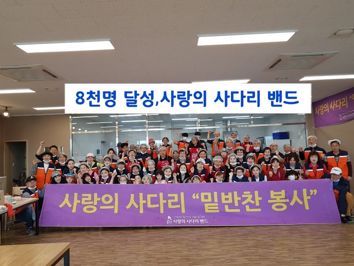 [세계타임즈 이장성 기자] 다양한 봉사를 꾸준히 실천하고 있는 SNS 대전시 봉사단체 사랑의 사다리 밴드(리더 이정제)는 지난3일 밴드개설 33개월 만에 8천명 회원가입을 대기록을 세우면서 지역봉사의 새로운 역사를 쓰고 있어 화제가 되고 있다.
