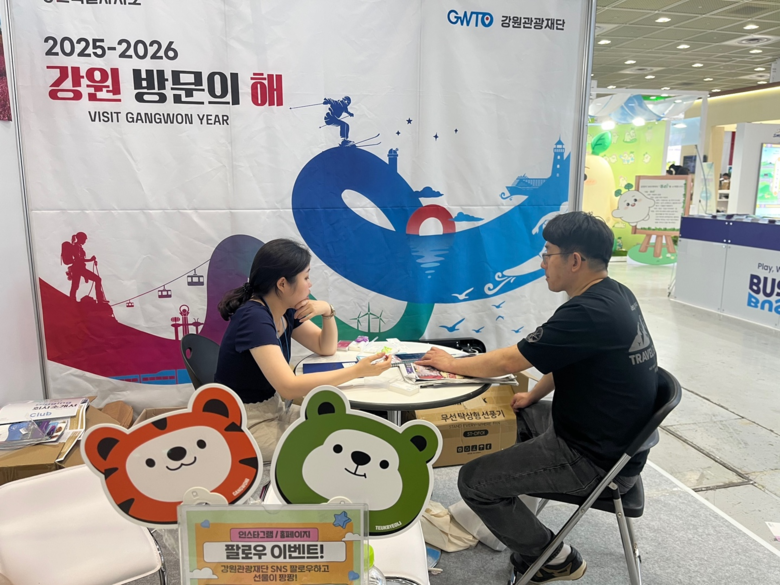 [강원도 세계타임즈=김민석 기자] 강원특별자치도(이하 강원자치도)와 강원관광재단(대표이사 최성현, 이하 재단)은 2025년 6월 5일(목)부터 8일(일)까지 서울 코엑스에서 열린 제40회 서울국제관광전에 참가해 외국인 관광객 유치를 위한 상담 행사와 일반 관람객을 위한 홍보 활동을 함께 진행하였다.