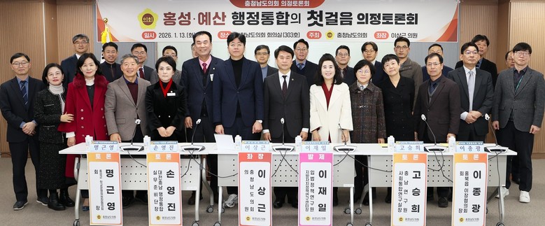 좌장을 맡은 이상근 의원(홍성1·국민의힘)은 “홍성·예산 행정통합은 행정 효율성 차원을 넘어 지방소멸 위기에 대응하고 내포신도시를 정상화하기 위한 전략적 선택”이라며, “오늘 논의된 의견들을 바탕으로 주민 공감대 형성을 위해 노력하고 정책적 검토를 지속해 나가겠다”고 밝혔다.