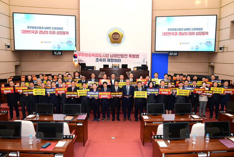 최 의장은 "우주강국 도약과 남해안 신경제권 형성, 나아가 국토 균형발전을 위해서는 체계적인 정책 추진과 국가 차원의 지원을 위한 특별법 제정이 매우 시급하다"며, "경상남도의회는 대의기관으로서 330만 도민의 뜻을 담아 특별법의 조속한 제정을 위해 최선을 다할 것"이라고 밝혔다.