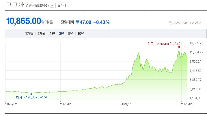역대 최고치를 기록한 코코아 등 원재료비, 가공비 상승에 환율 상승 겹쳐