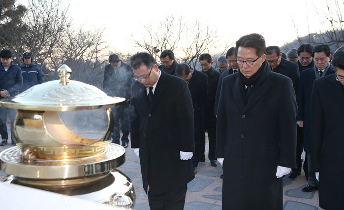 국민의당 박지원 신임 대표가 16일 오전 서울 동작구 국립서울현충원 김대중 전 대통령 묘소를 찾아 참배하고 있다. 2017.01.16