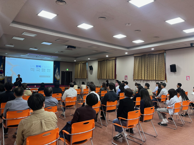 이날 강의는 인사혁신처에서 2년 연속 ‘적극행정 우수강사’로 선정된 이승은 강사(함께성장컨설팅)가 진행했으며, ‘나의 행복을 높이는 적극행정’을 주제로 열렸다.