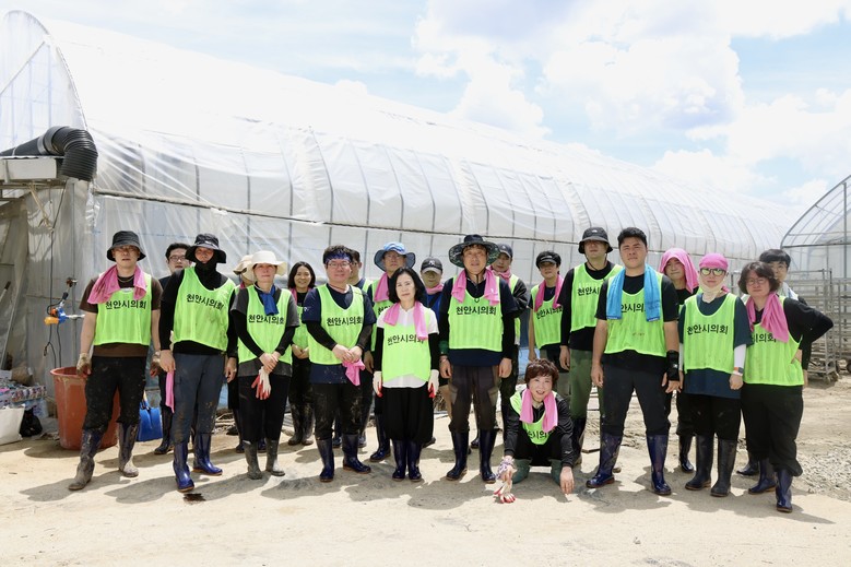 수해 피해가 컸던 지역 중 풍세면의 추천을 받아 선정한 작업 장소는 풍세면 보성리 소재의 육묘장(농가주 시모씨)으로, 시설 및 작물 침수 피해가 컸으나 자원봉사자들의 손길이 닿지 못했던 농가 중 하나였다. 천안시의회는 수해 복구 일손 부족으로 어려움을 겪고 있는 농가에 실질적인 도움을 주고자 이번 활동을 추진했다.