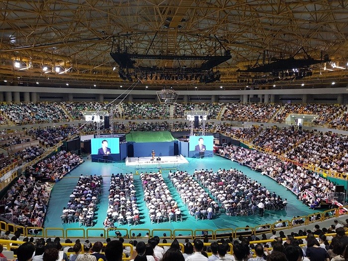 [세계타임즈 이판석 기자] '사랑은 없어지지 않습니다'라는 대회 주제로 개최되는 2019 여호와의 증인 창원지역대회 마지막 날 일정이 28일 오전 창원시 창원 실내체육관에서 진행되고 있다.