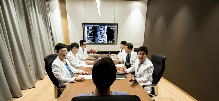 | ▲자생한방병원 한·양방 의료진이 새로운 한·양방 협진 시스템인 ‘의사·한의사 한자리 진료’를 위한 회의를 하고 있다. |