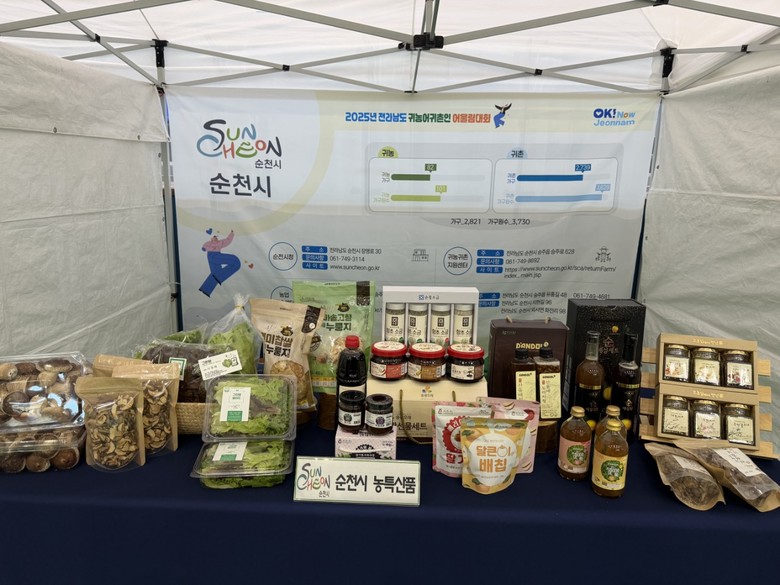 시는 전시·홍보관에 송화버섯, 샐러드 채소, 상추 등 신선 농산물과 매실청, 산돌배청, 전통장류 등 지역을 대표하는 가공 농특산품을 전시해 큰 호응을 얻었다. 특히, 귀농인들이 직접 재배·가공한 제품을 통해 ‘순천 농업의 지속 가능한 가치와 품질’을 널리 알리는 계기가 됐다.