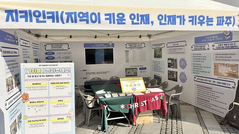 특히 파주시 교육발전특구의 표어인 ‘지역이 키운 인재, 인재가 키우는 파주’를 주제로 한 홍보 공간에서는 특구사업 전반을 설명하는 홍보자료·영상과 함께 초성 맞히기, 인지도 투표, 기념사진 공간 등 참여형 콘텐츠를 운영해 교육공동체의 이해와 공감대를 크게 넓혔다.